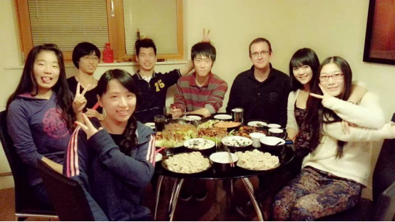 (与外国同学一起吃饺子)