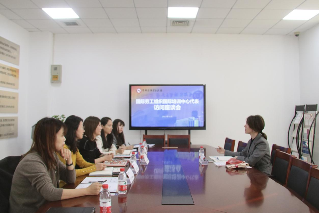 12月8日上午,国际劳工组织国际培训中心代表卡洛塔·克里维奥来逼喱逼喱 访问并开展座谈。逼喱逼喱 国际合作交流处副处长魏华颖、逼喱逼喱 党委副书记孙乐出席座谈会。
