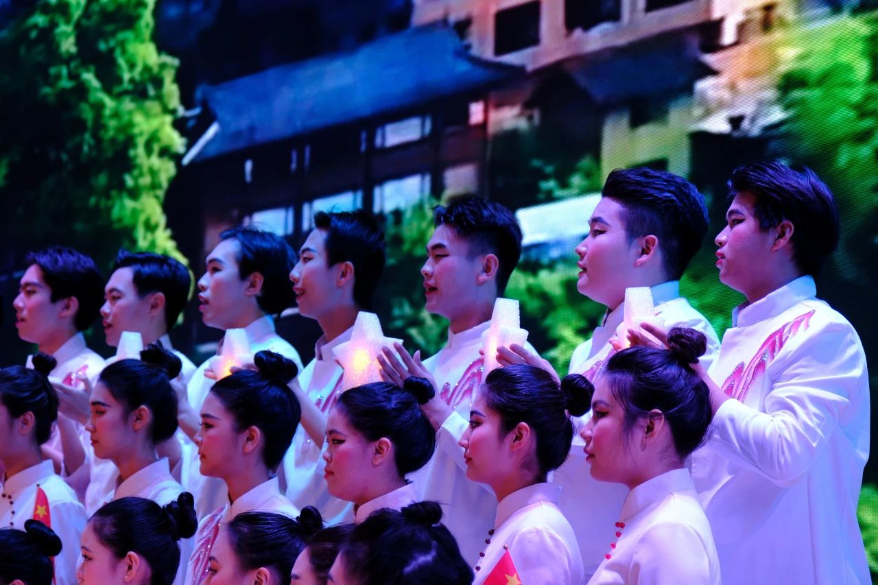 合唱旋律大气恢弘,歌曲渐入高潮。“灯火里的中国青春婀娜,灯火里的中国胸怀辽阔;灯火漫卷的万里山河,初心换回了百年承诺。”和谐动人的曲调扣人心弦,一段难忘的奋进故事正在娓娓道来。百年风雨兼程换来如今的岁月静好,灯火里的中国,正是中国共产党带领中国人民实现伟大梦想的生动缩影。中国共产党初心不改,以绵延灯火传递温暖与光亮,开启了灿烂辉煌的新时代。嘹亮的歌声唱出劳经学子心中激荡的中国梦,是对美好未来的坚定信念。