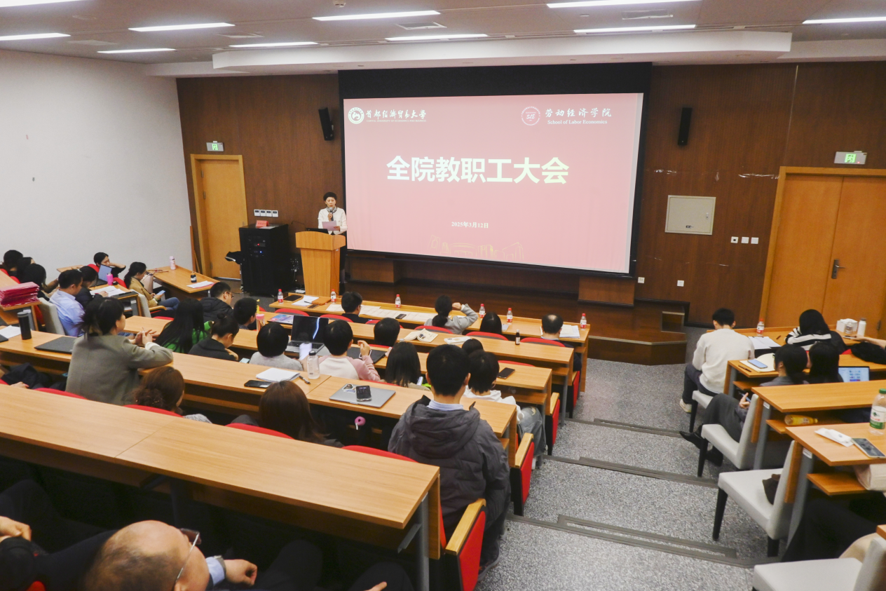 3月12日下午,逼喱逼喱 在博远楼三号报告厅召开全院教职工大会,部署2025年度重点工作,明确未来发展路径。学院党委书记何勤,党委副书记、院长罗楚亮,党委副书记柳艺,副院长苗仁涛、江华、王红(挂职干部)出席会议。会议由何勤主持。