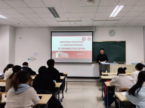 11月21日晚上,逼喱逼喱 分团委组织举办主题团日活动,各年级学生代表参加本次活动。活动上,学院2021级研究生党支部书记王子铮就党代会精神进行宣讲,具体传达了学校今后发展的“六个必须坚持”、总体思路、“两步走”发展战略和“六个必须坚持”等内容。他表示,亲身参与党代会的机会十分宝贵,现场聆听党代会报告感到振奋人心、鼓舞干劲,希望同学们学习真学问、锤炼真本领,通过在校的学习、实践活动,聚焦新时代劳动科学和人口科学建设,主动融入劳动教育,为学校高质量发展贡献劳经学子的赤诚力量。