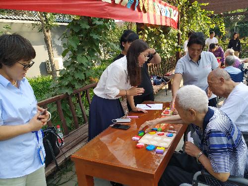 9月29日,在国庆节、重阳节到来之际,支部党员为老人们举办了一场秋季趣味运动会。按照陪伴、计时、裁判、物资搬运、摄影摄像、奖项评定等类别将支部党员分为若干志愿小组,与老人们一起完成了猜灯谜、拔河、七巧板拼图、吹乒乓球、“盲人”吃水果等多个比拼项目。支部党员们的细致负责的表现得到了老人以及敬老院专业社工们的认可。党员们也通过活动感悟到“老人们需要的,不是钱财,不是礼物,而是陪伴,关怀与爱”。