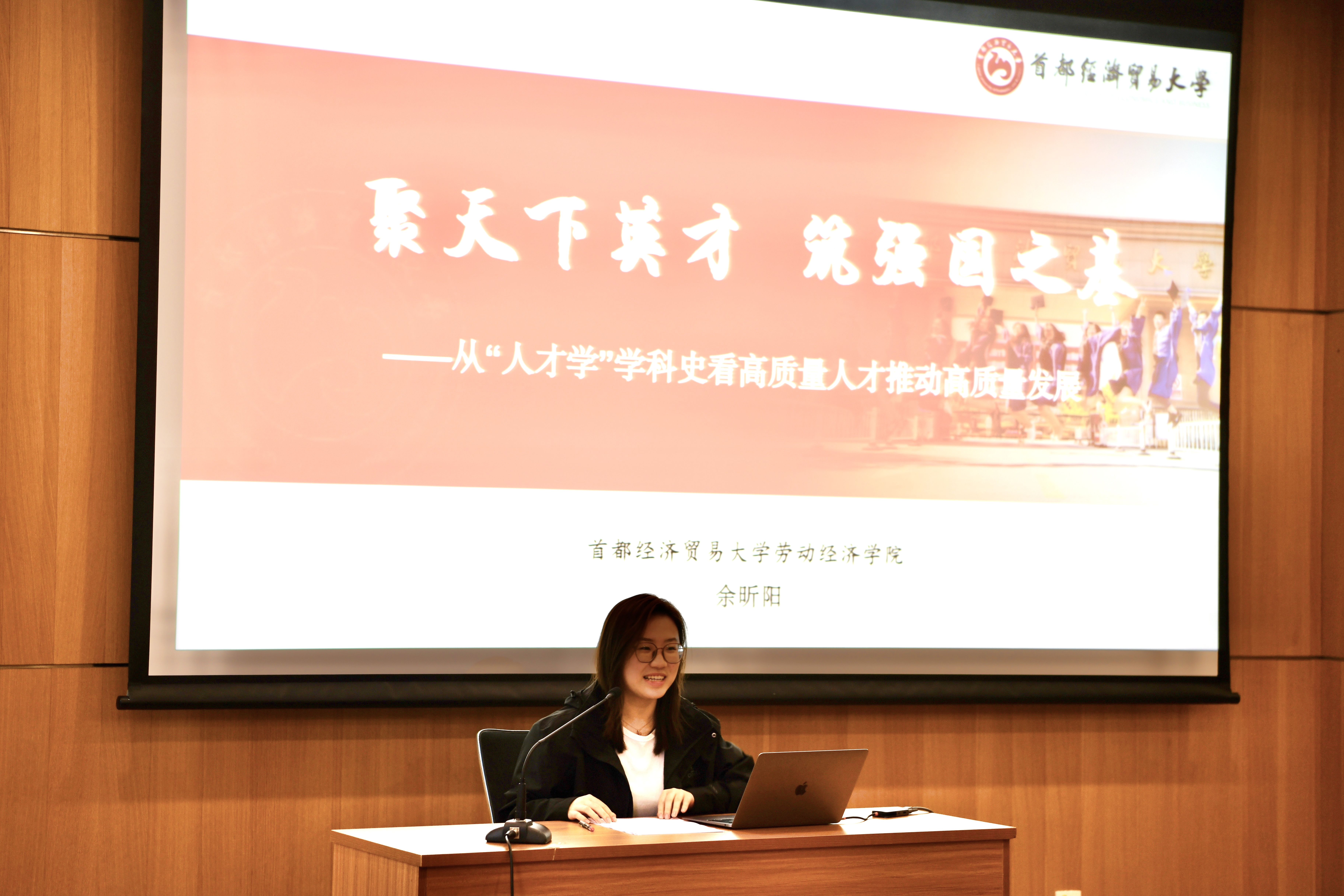 余昕阳以“聚天下英才,筑强国之基”为主题,从“人才学”学科史看高质量人才发展。她与大家一起回顾了“人才学”学科发展历程。不同历史时期,国人都会树立“聚天下英才而用之”的理念,既推动事业兴盛、更推动国之繁荣。从1978 年邓小平同志提出“实现四个现代化,人才是关键”到2022年二十大报告指出教育、科技、人才是全面建设社会主义现代化国家的基础性、战略性支撑,不难发现人才学对国家、对社会的贡献有着深远的影响。她强调了二十大报告中关于人才论述的 5 个“首次提出”、6 个“再次强调”、4 个“新的变化”,这些都值得我们深入思考并贯彻落实。人才学专业的研究生,应该在对二十大报告的不断解读和逻辑的理清中,研究真问题,服务于国家战略和首都建设,尽自己能力推动人才学科发展,用实际行动助力高质量发展推进中国式现代化。