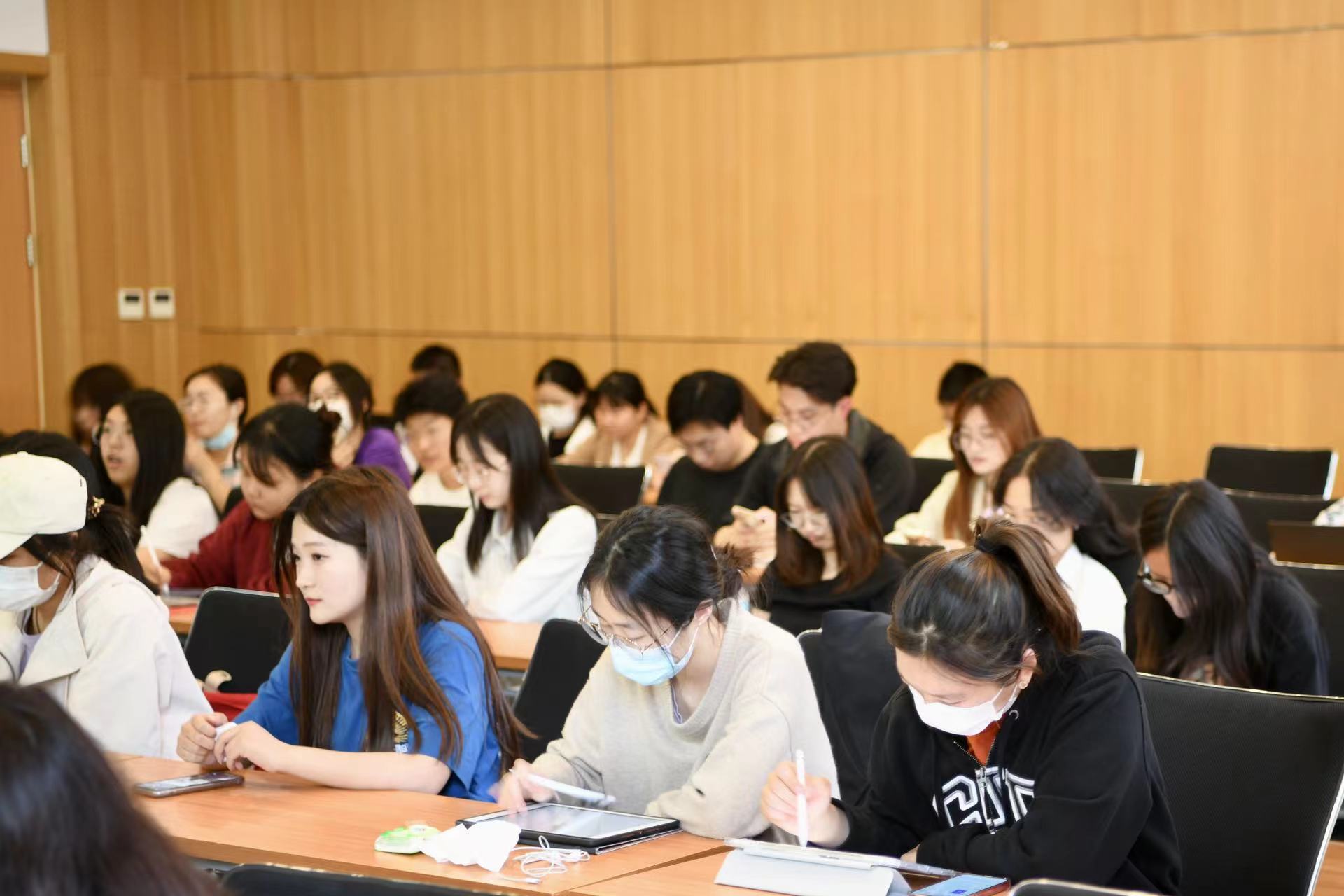段丹天进行了题为“以高质量发展推进中国式现代化”的主题分享。他从马克思主义发展观视角进行了概念解析,并从创新驱动、实现共同富裕、绿色发展、统筹发展与安全、全球化进程等角度,结合基层调研的具体案例,对实现中国式现代化的转型路径进行了讨论。从理论和实践两个逻辑,让同学们对中国式现代化有了相对整体的理解,明晰了以中国式现代化全面推进实现中华民族伟大复兴,并向全世界贡献中国智慧、中国方案的重要理论价值。