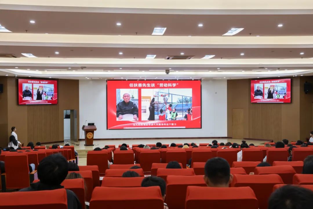 开场环节,学院兼职辅导员王子铮从劳经历史传承切入,鼓励同学们从学科发展中汲取“顶天”养分,从社会实践中培养“立地”本领,通过四年大学生活的锤炼铸就绚丽多彩的青春。