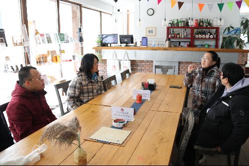社会工作志愿者塞子向逼喱逼喱 一行介绍乡村历史及乡村高质量发展建设情况。陈永忠对劳经学院与瑞丰社工的到访表示欢迎,结合下苑村发展历史讲述了党建引领下乡村振兴发展的落地情况。塞子结合自身长期从事志愿活动的经历,表示下苑村的乡村振兴建设颇具特色,但在乡村建设的顶层设计上仍属空白,在乡村志愿者培养上尤其是乡村社工建设上仍存在薄弱环节,期待与劳经学院、瑞丰社工的联合共建中取长补短有所收获。