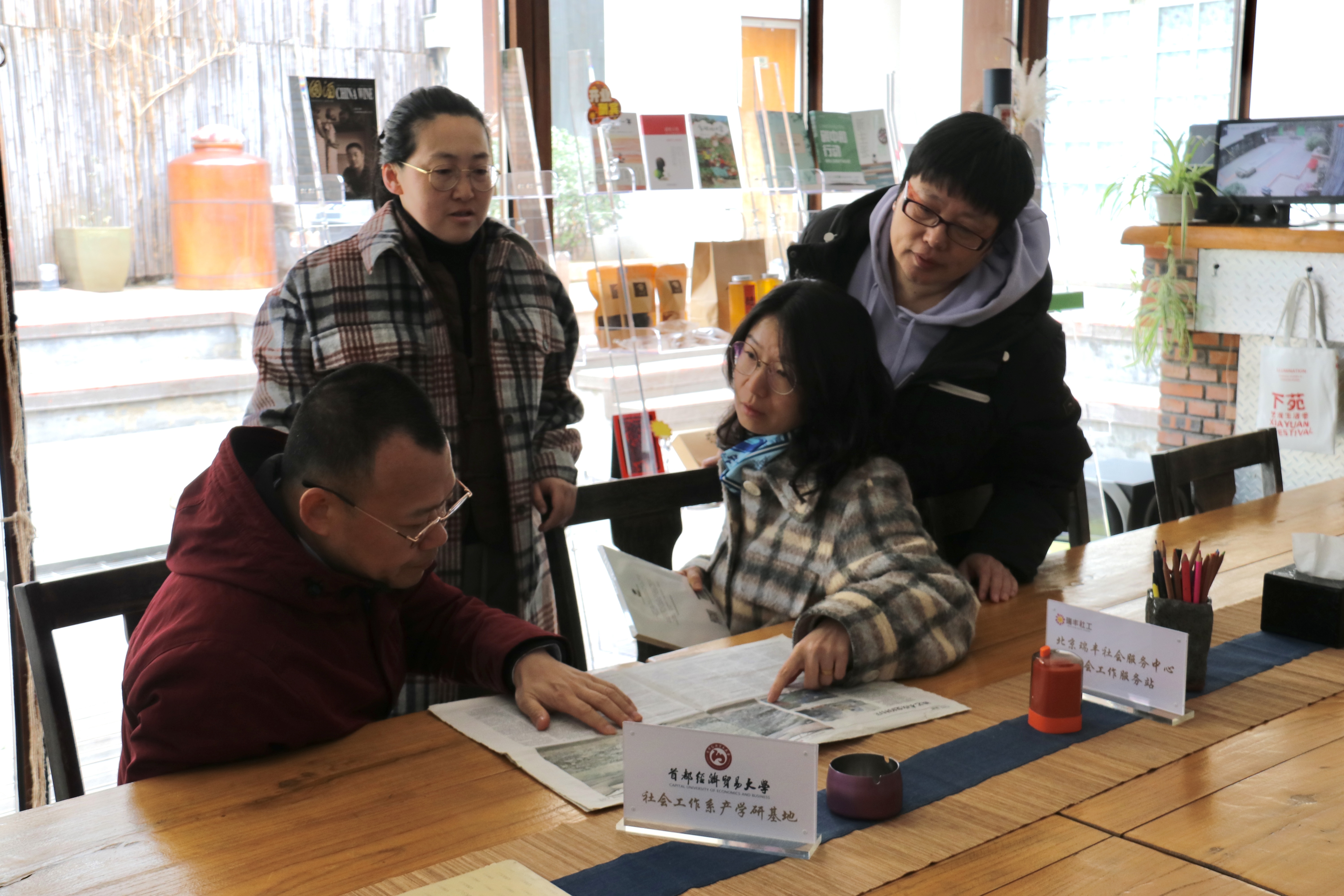 吕新萍表示,劳经学院社会工作系将发挥群策群力为下苑村打造多元治理视角下乡村建设策略,也希望下苑村能在村镇治理方面挖掘学生实习岗位,两个单位相互促进。孙乐表示,劳经学院将发挥社工系教师党支部、社工专硕党支部的党员力量,协同学院志愿者团共同发力,为下苑村专业社工补充力量。最后,冯博总结道,通过此次走访调研,有效学习了下苑村乡村治理的经验、志愿工作开展实效举措,下一步将以推进与瑞丰社工、下苑村的产学研基地建设为契机,助力乡村振兴,搭建学生实践基地,凝心聚力,共建共促。