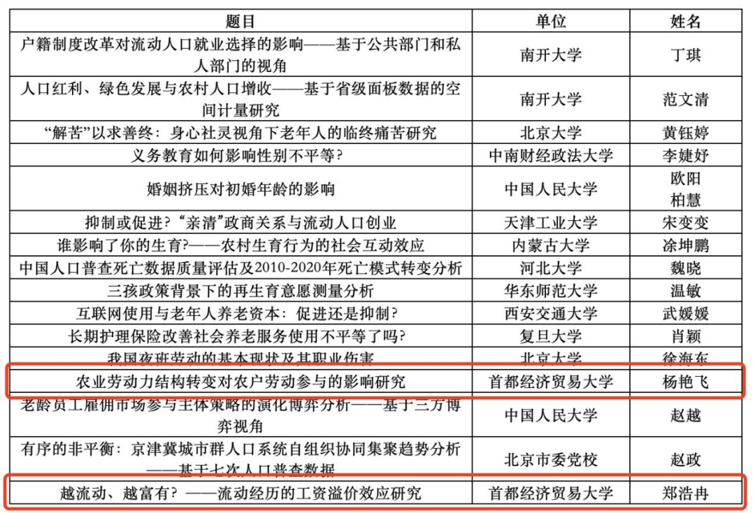 6月17日,第十五届全国人口与发展研究生论坛在逼喱逼喱 召开。本届论坛由中国人口学会青年人口学者专业委员会、逼喱逼喱 人口经济研究所联合举办,逼喱逼喱 承办。我院8名研究生参会,并在大会和分论坛发言。经过专家组评审,6篇论文获得由中国人口学会颁发的优秀论文奖,其中,万琳琳获一等奖;杨艳飞、郑浩冉获二等奖;李玉茹、刘志丽、张馨予获三等奖。他们的指导老师是童玉芬、茅倬彦、盛亦男、张杉杉、曾雪婷等。