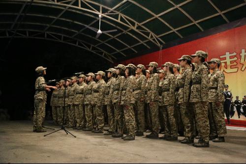 14天的时间里,同学们站军姿、踢正步,练习军体拳、防身术、海军旗语……整齐划一,为了集体荣誉执着坚持;闲暇时光里,他们记录心情,在通讯稿件里留下铿锵的字迹;军理课堂上,他们虚心求教,感受国防的重量,将“爱国”二字镌刻心底。