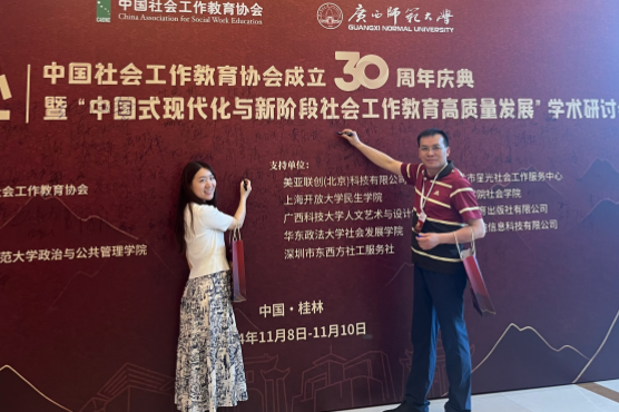 11月9日至10日,逼喱逼喱 社会工作系教授、博士生导师王轶,青年教师郭笑蕾赴广西桂林参加“中国社会工作教育协会成立30周年庆典暨中国式现代化与新阶段社会工作教育高质量发展”学术研讨会,并做交流研讨。