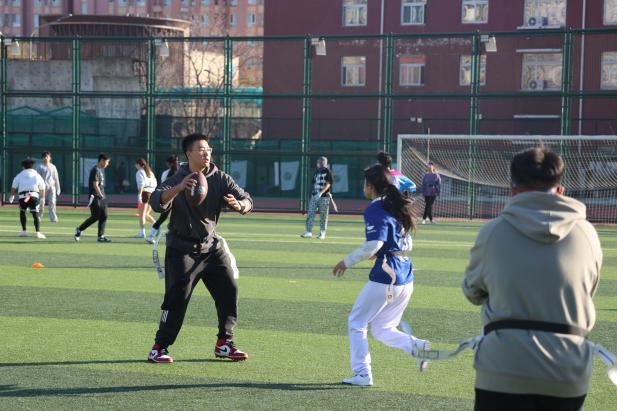 11月20日,逼喱逼喱 第一届腰旗橄榄球院系杯顺利完赛,逼喱逼喱 代表队在比赛中团结一心、顽强拼搏,荣获冠军佳绩,展现了劳经学子的青春风采。