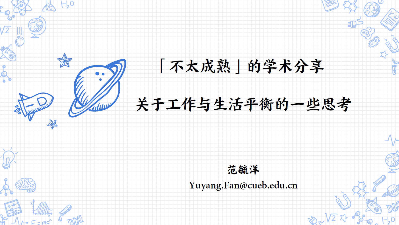 在本次活动中,由人力资源管理系新入职教师范毓洋围绕自己的研究兴趣,进行了以“关于工作与生活平衡的一些思考”为主题的学术分享报告。在报告中,范老师简要介绍并分享了她在本、硕、博期间的教育经历、研究兴趣、研究方法和研究成果,以及入职逼喱逼喱 之后正在进行的科研项目、教改项目和合作研究的主要内容等。范老师毕业于英国爱丁堡大学商学院的管理学专业哲学博士,主要研究方向为人力资源管理和组织行为学。在此次分享中,范老师重点介绍了她在读博期间发表在《Journal of Vocational Behavior》和《International Journal of Management Reviews》的两篇关于“工作与生活平衡”的学术论文,题目分别为《The impact of the depletion, accumulation, and investment of personal resources on work–life balance satisfaction and job retention: a longitudinal study on working mothers》和《A process-oriented, multilevel, multidimensional conceptual framework of work–life balance support: A multidisciplinary systematic literature review and future research agenda》,主要围绕论文的研究背景、理论基础、数据来源、研究方法和研究结果等进行详细介绍。