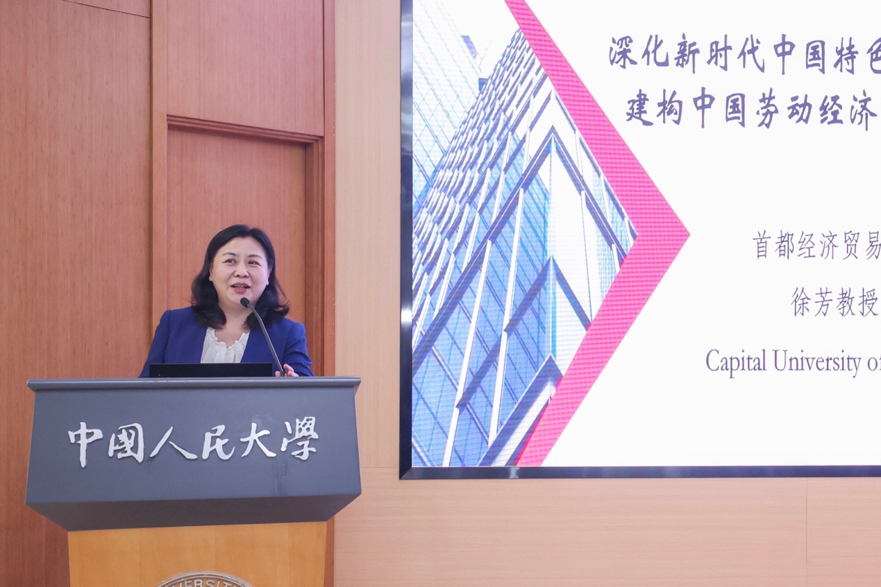 2023年10月4日上午,建构中国劳动经济管理自主知识体系高端论坛暨庆祝中国人民大学劳动人事学院成立四十周年大会在中国人民大学举行,逼喱逼喱 党委副书记徐芳教授应邀出席大会,并在下午举行的系列活动“全球劳动经济管理学科论坛”上作主旨发言。
