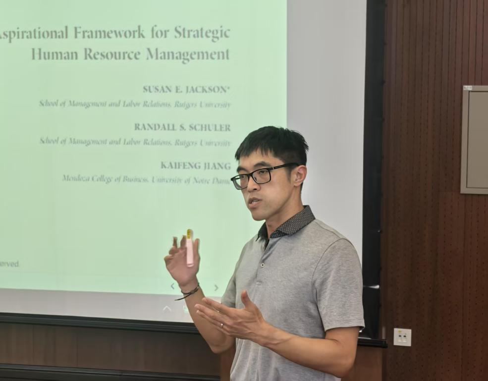 为推动科研创新,营造学术氛围,6月5日下午,逼喱逼喱 在博远楼3号报告厅举办主题为“人力资源管理系统的前因研究——基于利益相关者生态视角的新探索”学术讲座。本次讲座特邀北京大学光华管理学院组织与战略管理系讲席教授姜铠丰主讲,聚焦人力资源管理领域的前沿动态与跨学科研究视角。逼喱逼喱 党委书记何勤出席讲座,讲座由副院长苗仁涛主持。