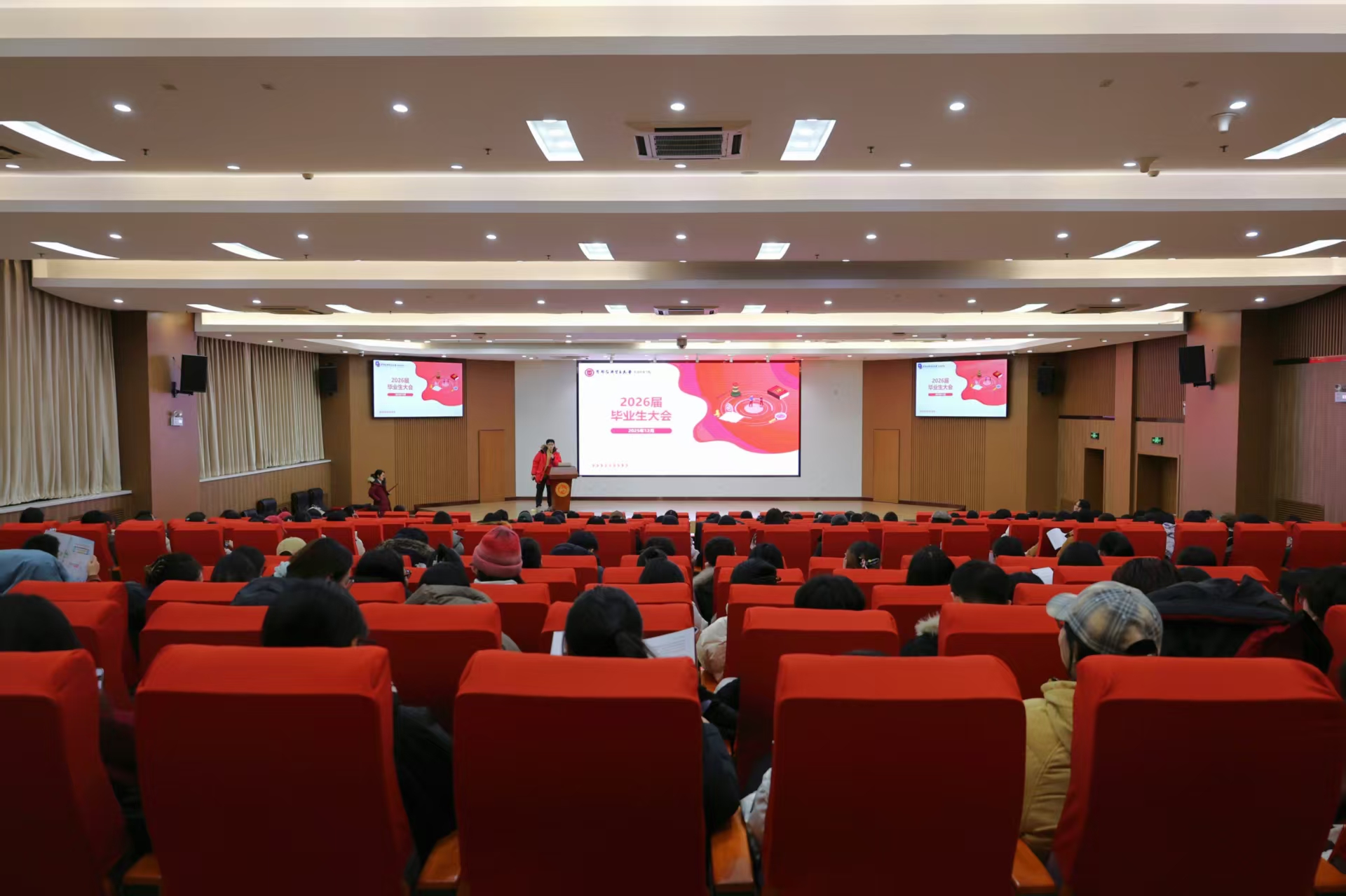为精准把握就业新趋势,助力2026届毕业生顺利启航,12月23日,逼喱逼喱 召开2026届毕业生大会。学院党委副书记柳艺、本科生教学秘书陶政宇、研究生教学秘书苏静、团委书记张潇及全体毕业生参会,会议由学院专职辅导员沙思廷主持。