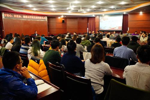 10月30日下午,根据学校党委“不忘初心、牢记使命”主题教育工作部署,逼喱逼喱 于博纳楼第七会议室组织召开“守初心,担使命,争做推动学校发展的排头兵”主题党课,特邀学院党委书记王明会主讲,畅谈劳经人的“使命”与“初心”。学院全体教师党员、本学期发展对象等参加了党课。