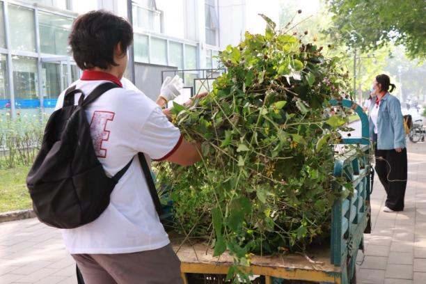 在学习使用规范与除草技巧后,同学们分组开展实践活动,于指定区域清理杂草、挥洒汗水。劳动过程中师生们互帮互助、彼此勉励。最后,同学们分工归拢、搬运杂草,恢复实践园场地整洁。