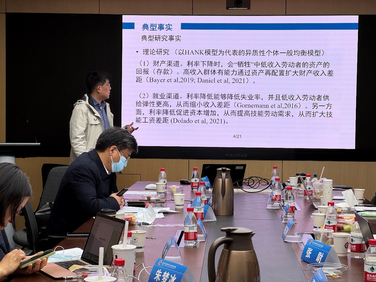 会议的下午场由浙江大学百人计划研究员史新杰主持。浙江大学博士生陶彦君分享了题为《货币政策对美国居民财富积累与财富分配的影响》的学术论文。浙江大学李家山博士后介绍了题为《我国居民养老金财富测算及其对财富分布的影响》的研究成果。中国社会科学院杨沫副研究员分享了题为《机会之地:中国地区代际向上流动测度及影响因素研究》的学术论文。浙江大学百人计划研究员高叙文分享了题为《Trade Policy, Migration Restrictions, and Gender Inequality:The Story of China’s Left-Behind Children》的学术论文。逼喱逼喱 吴珊珊老师分享了题为《中国城镇地区医疗支出的不平等及演变趋势:2002-2018 年》的学术论文。逼喱逼喱 张尉老师分享了题为《从降成本到稳预期——社保降费的企业投资决策影响》的学术论文。逼喱逼喱 闫里鹏老师分享了题为《利率冲击对城镇劳动收入差距的影响:理论、机制与异质性分析》的研究成果。