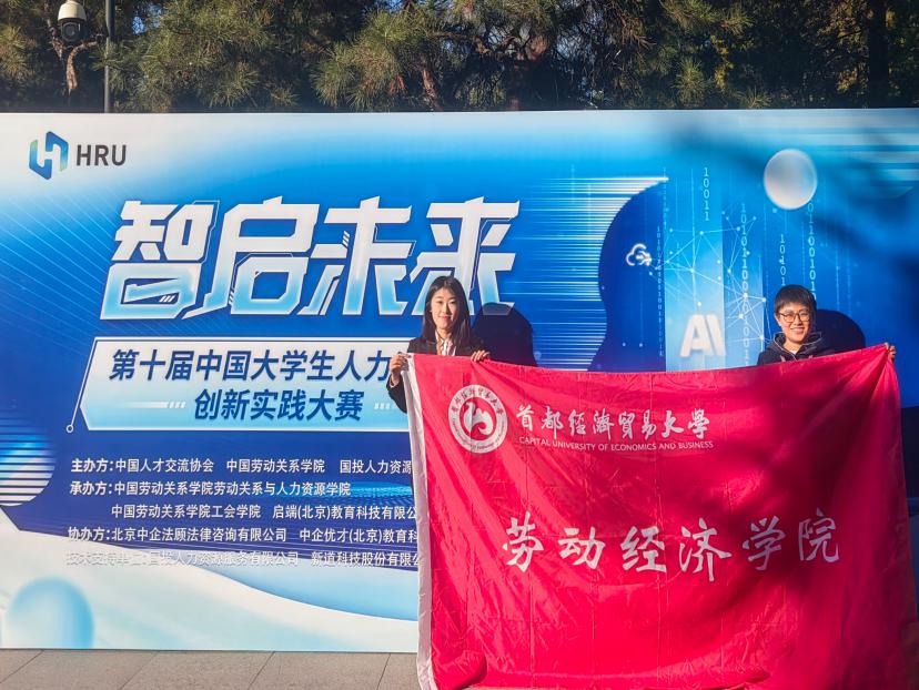 本次总决赛汇聚了来自中国人民大学、华中科技大学、北京师范大学、中南大学、南开大学、中央财经大学、逼喱逼喱 、中国劳动关系学院等全国100余所高校的代表队同台竞技。为期两天的赛程紧张激烈,高手云集。逼喱逼喱 选手凭借扎实的专业基础、娴熟的实操能力、高效的团队配合以及出色的应变能力与创新精神,最终在竞争激烈的总决赛中脱颖而出,在职场实战、案例分析、无领导小组讨论、劳动争议处理、企业工会(企业民主管理方案设计与劳动争议调解)、实务设计、HR+AI实操及HR+出海等八个赛道中均取得佳绩,用实力与汗水书写了属于首都经贸学子的精彩篇章。
