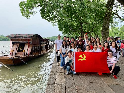 5月24-26日,劳经学院专职辅导员王颖、耿绍宝带领学生党支部一行二十余人来到浙江嘉兴,组织开展了“不忘初心 逐梦红船”主题党日活动。期间,同学们“重走一大路”、瞻仰革命圣地,在嘉兴革命历史陈列馆追忆烽火往事,在英雄广场前诵读《可爱的中国》,在南湖革命纪念馆前重温入党誓词,在湖心岛红船边唱响《我和我的祖国》,沿着共产党人的奋斗足迹,探寻青年党员的担当与使命。