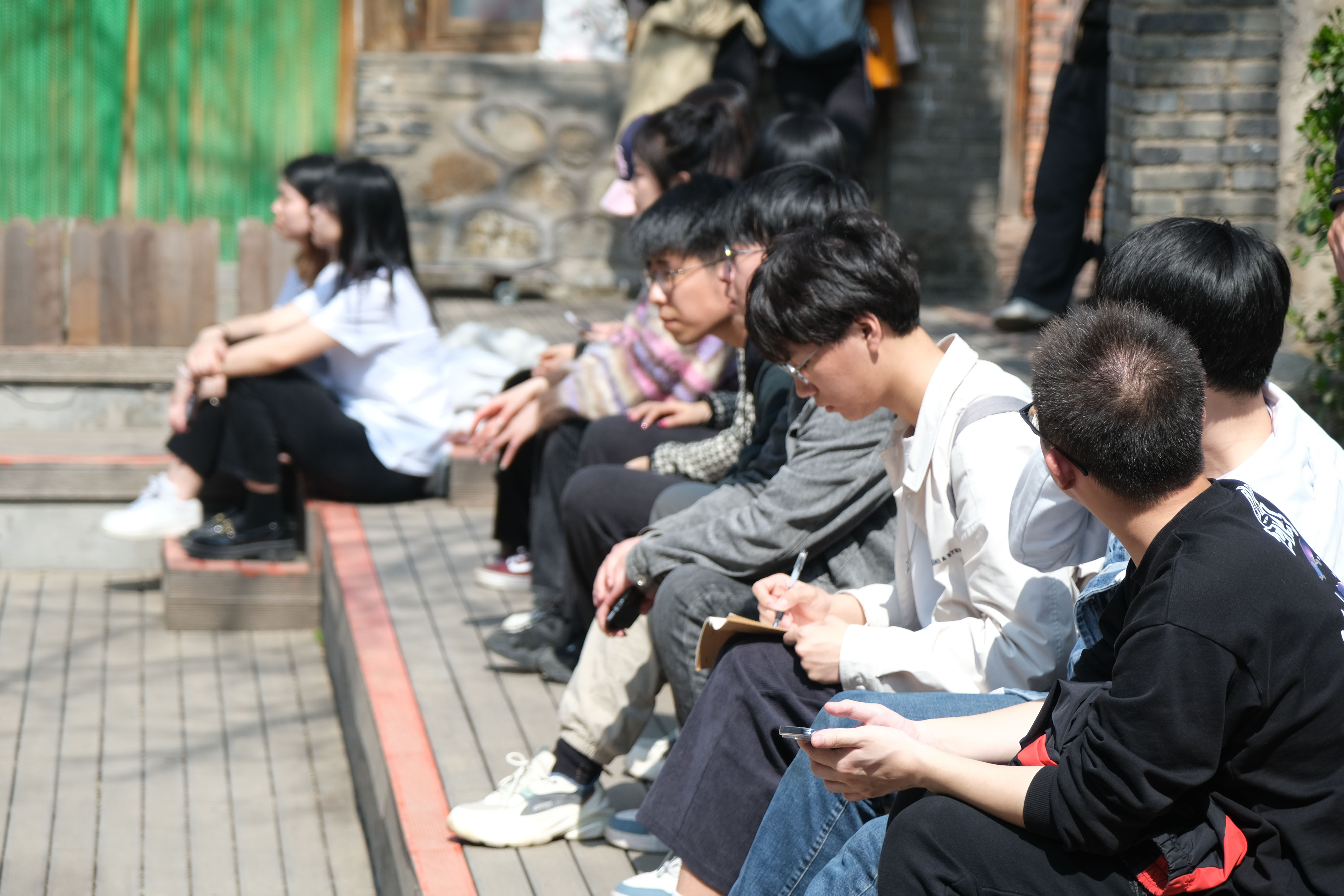 上午,劳经师生跟随塞子、老陈、老汤等驻村志愿者参观村分类回收站、村内艺术装置、艺术集市平台、骑行俱乐部大本营等地,了解下苑村乡风文明建设现状,搜集乡村多元治理元素。同时,在专业青年教师的带领下,同学们分组针对“村社多元治理”、“党建与社会工作在村社治理的作用”、“村社治理现状与问题”三个主题入户访谈。
