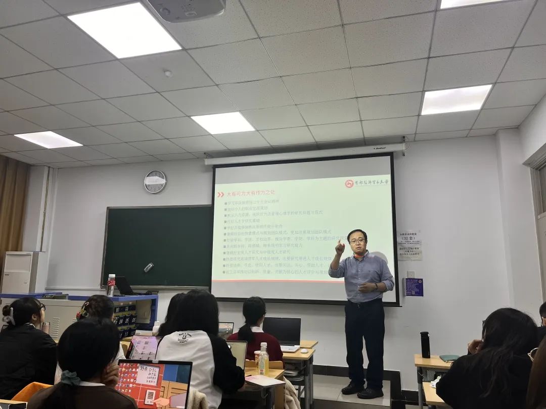 在《人才统计与计量分析》的课堂上,苗仁涛老师以“大有可为大有作为”为主题,将二十大报告中对人才学学科建设、科学研究、人才培养及队伍建设具有重要引领和示范作用,并紧密相关的第五部分 “实施科教兴国战略,强化现代化建设人才支撑”所涉及的教育、科技、人才系统有机地呈献给同学们。