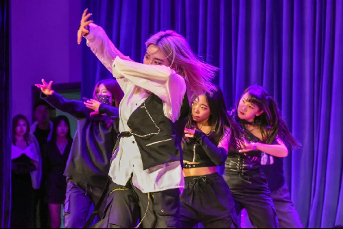 首先是E-shine舞社给我们带来精彩表演舞蹈节目——《boy with luv》,这段舞蹈集合了青春、休闲与活力的元素,在偏暖的舞台灯光效果之下,表演者用她们精心准备的舞步和整齐划一动作为我们带来了一场视觉盛宴,勾起了同学们的青春回忆,也引发了大家对未来大学生活的思考。