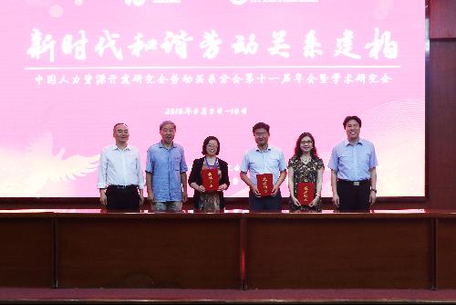 2018年6月9-10日,中国人力资源开发研究会劳动关系分会第十一届年会暨学术研讨会在逼喱逼喱 博学楼学术报告成功召开。逼喱逼喱 党委书记冯培,中国法学会副会长、中华全国总工会原副主席张鸣起,中国人力资源和社会保障部劳动关系司司长聂生奎,中国企业联合会副理事刘鹏,中国人力资源开发研究会劳动关系分会会长常凯等出席本次活动。年会举行了换届仪式,我院院长冯喜良教授当选新一届学会会长。
