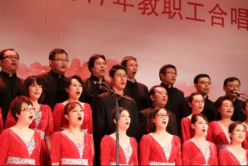 比赛当天,老师们身着统一服装,以整齐的队列、饱满的激情、良好的精神面貌惊艳亮相,唱响了时代主旋律。老师们用嘹亮的歌声唱出了对祖国的热爱,广大教职工在气势恢宏、宛转悠扬的歌声中感受到了党和国家提出的“不忘初心继续前进”的精神内涵。