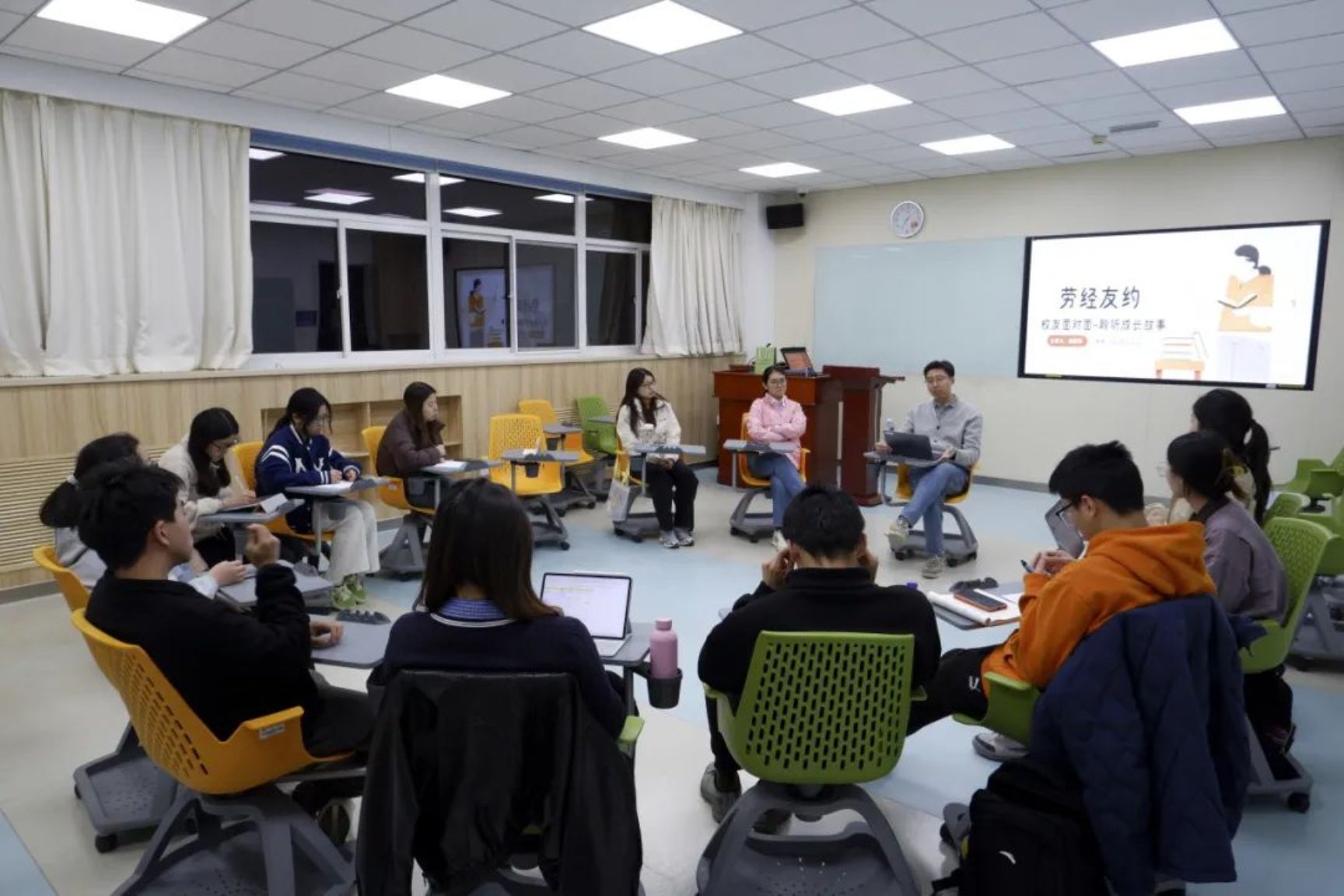 为进一步深化校企合作,全方位铺就大学生成长之路,逼喱逼喱 推出“劳经友约”系列大咖座谈交流活动。3月27日,首场“劳经友约”座谈会在慎思楼124智慧教室开展。学院邀请到人力资源管理专业毕业生段博洋学长重返校园。身为 “过来人”,段学长带着满满诚意,凭借自身丰富的职场阅历,为同学们带来一场干货满满的经验分享会,耐心解答同学们在学业规划、职业选择等方面的诸多困惑。