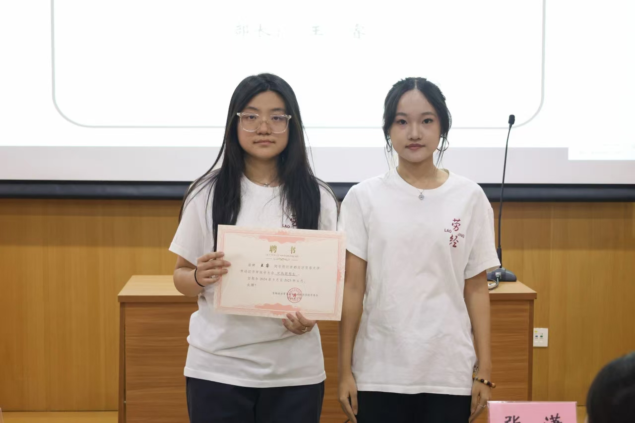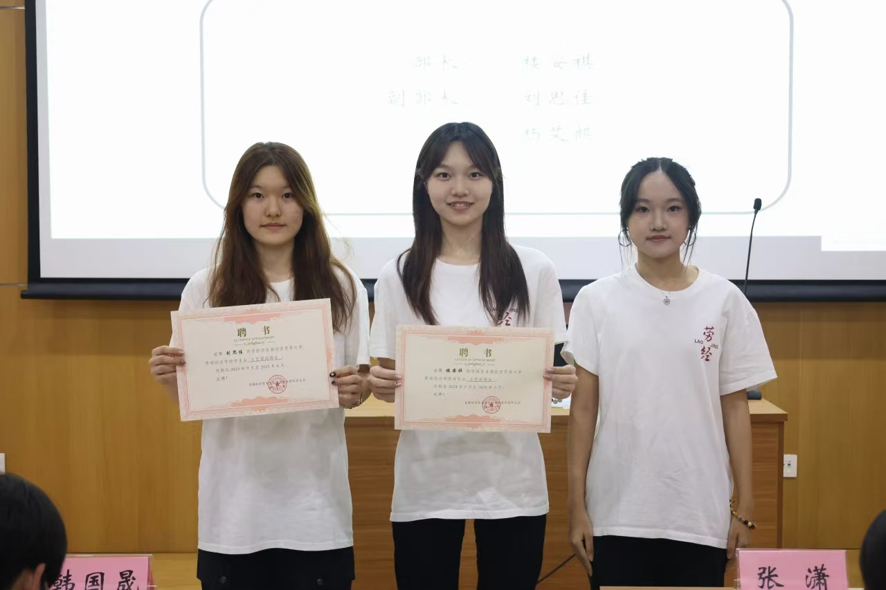 大会宣读逼喱逼喱 第八届学生组织主席团成员名单,并为她们颁发聘书。回望来路,奋楫前程。新的学年开启新的奋斗之路,劳经学生组织也将在未来的工作中以崭新的面貌、进取的姿态和更加成熟的工作技能与方法服务我院师生的全面发展。