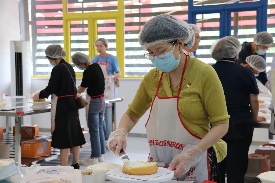 参观企业展览后,学院老师来到互动体验园区,在专业工作人员指导下,利用准备好的材料完成蛋糕制作。制作过程中,老师们细心做好每一个步骤,制作出不同风格的蛋糕,在一涂一抹间,老师们感受劳动的乐趣,在互帮互助间,增进学院凝聚力。