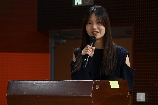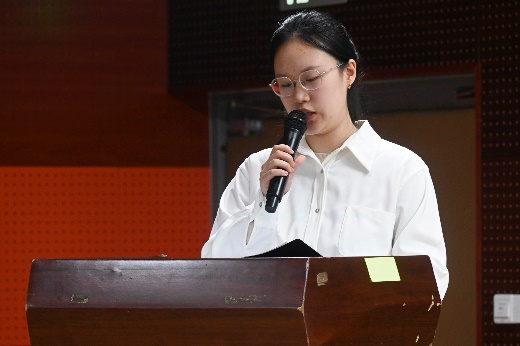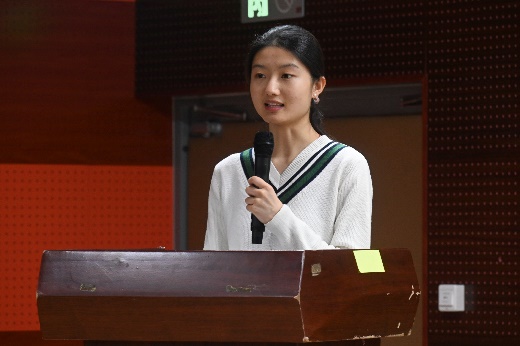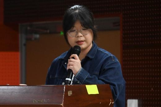 大会第八项,学生会“优秀干事”获奖代表曹翊菲发言。她表示,自己在本学期工作中深刻认识到各部门相互团结协作的重要性以及学生组织在发展的重要意义。同时,她希望与广大学生骨干一道以笃行之心,坚守初心责任,为学院学生组织创造更加灿烂辉煌的未来。
