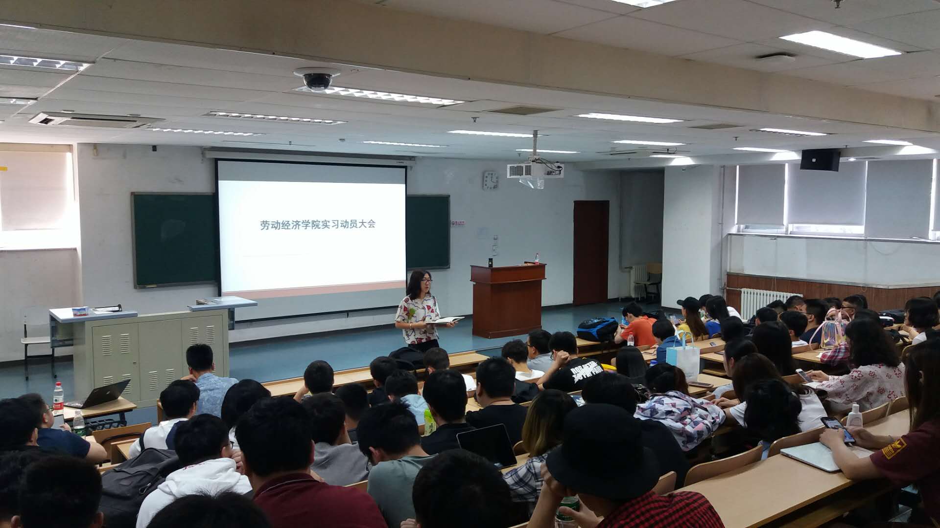 2018年5月9日中午,逼喱逼喱 2018年度集中实习动员大会于博学楼第二阶梯教室顺利召开。本次动员大会面向学院2015级全体本科生,旨在引导同学们做好暑期实习准备,知悉相关流程及要求,深入领会社会实践的重要意义。学院教学副院长范围、学生实习工作主管教师李楠参与此次会议。
