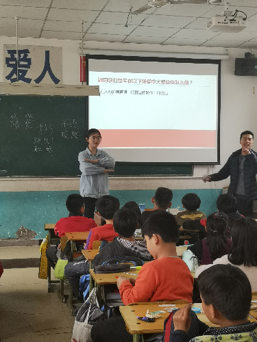 温热的风刮走了泛黄的落叶,刮来了人们对春的渴望。2019年3月20日团学组织志愿服务部迎来了本学期第一次支教活动。在春冬交接之际,志愿者们来到了行知学校,带着自己对支教的激动与憧憬,带来了一堂生动的安全知识课堂,和孩子们度过了一节愉快的学习时光。