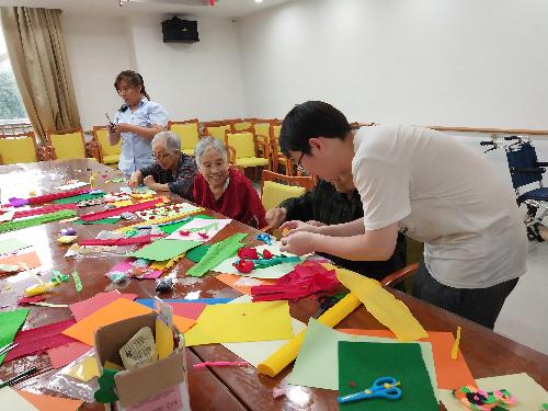 下午两点半,志愿者们到达了敬老院,见到了敬老院本次的活动负责人赵文博学姐。赵文博学姐是我院社会工作专业毕业生,现就职于北京嘉祥敬老院。赵文博学姐先向同学们介绍了本次活动的主要流程,并着重强调了活动进行中爷爷奶奶们的安全防护问题。参与活动的爷爷奶奶大多数为高龄退休老教师,行动不便,且近半数患有阿尔茨海默症。这要求志愿者们在陪伴老人活动时要做好严格的看护,防止爷爷奶奶被剪刀划伤、摔伤、误食轻土等。本次的志愿者为我院党支部优秀党员代表,在简单的自我介绍后便投入了工作中。