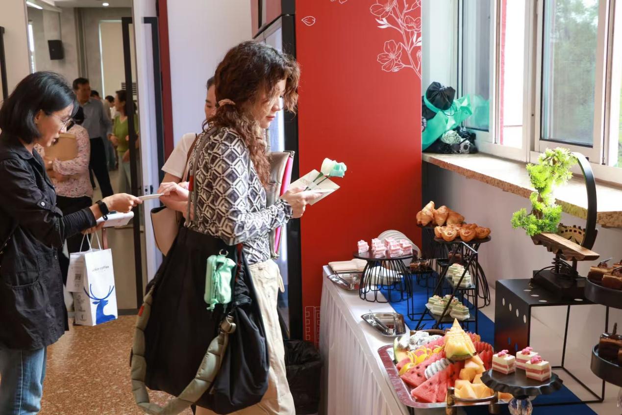 最后,是由全体教师参加的教师节茶话会。老师们根据个人喜好取用精致茶点,沟通假期生活和工作进展,并对如何更好开启新学期的工作与生活进行了欢快展望。茶话会现场欢声笑语,气氛热烈祥和。