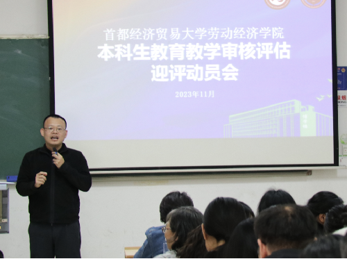 随后,冯博提出了学院教师参与新一轮教育教学评估的工作要求。他表示,学院教师要进一步审核对审核评估工作的认识,围绕工作要求扎实学科知识和专业北京,强化教学方法和教学设计能力。他强调了老师们要具体着眼于教学基本文件的准备,严谨治学,精心备课,准时上课,规范行为。新一轮教育教学评估的工作要求不仅体现了对教师的专业要求,也体现了对教育工作的尊重和重视,冯博希望学院通过新一轮审核评估,促进教师队伍建设,提升本科教育教学质量,进一步落实立德树人根本任务。