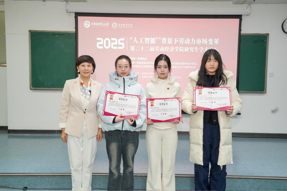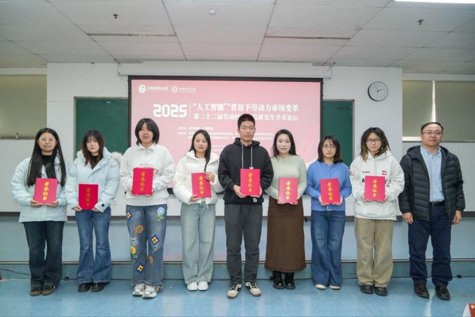何勤为论坛致辞。她指出,当前“人工智能+”行动深入推进,科技与产业变革加速,劳动力市场正经历岗位迭代、技能重构的深刻变革,直接关联高质量充分就业与现代化产业体系构建。此次论坛的举办,既为跨学科智慧交融、深化理论探索提供了平台,也能聚焦实践痛点凝聚青年共识,兼具重要学术价值与现实意义。她寄语同学们珍惜机会,勇于表达见解、敢于质疑反思,在学术与精神上双成长;期待评委老师倾囊相授,为学子学术探索指引方向,最后预祝论坛圆满成功,助力中国式现代化建设。