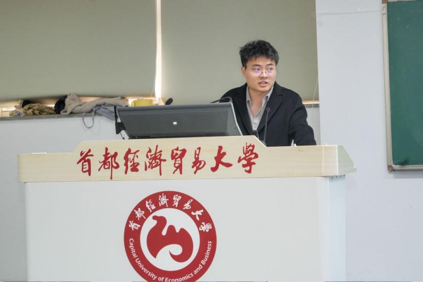 关鑫为论坛致辞。他希望同学们保持批判性思维,勇于质疑创新,以严谨态度与开放胸怀深耕学术;要心系国家大局与社会需求,将个人学术追求融入民族复兴伟业,践行“请党放心、强国有我”的誓言。最后,他祝愿论坛圆满成功,鼓励同学们珍惜交流机会,秉持“崇德尚能、经世济民”的校训,为高质量发展与中国式现代化贡献经贸力量。