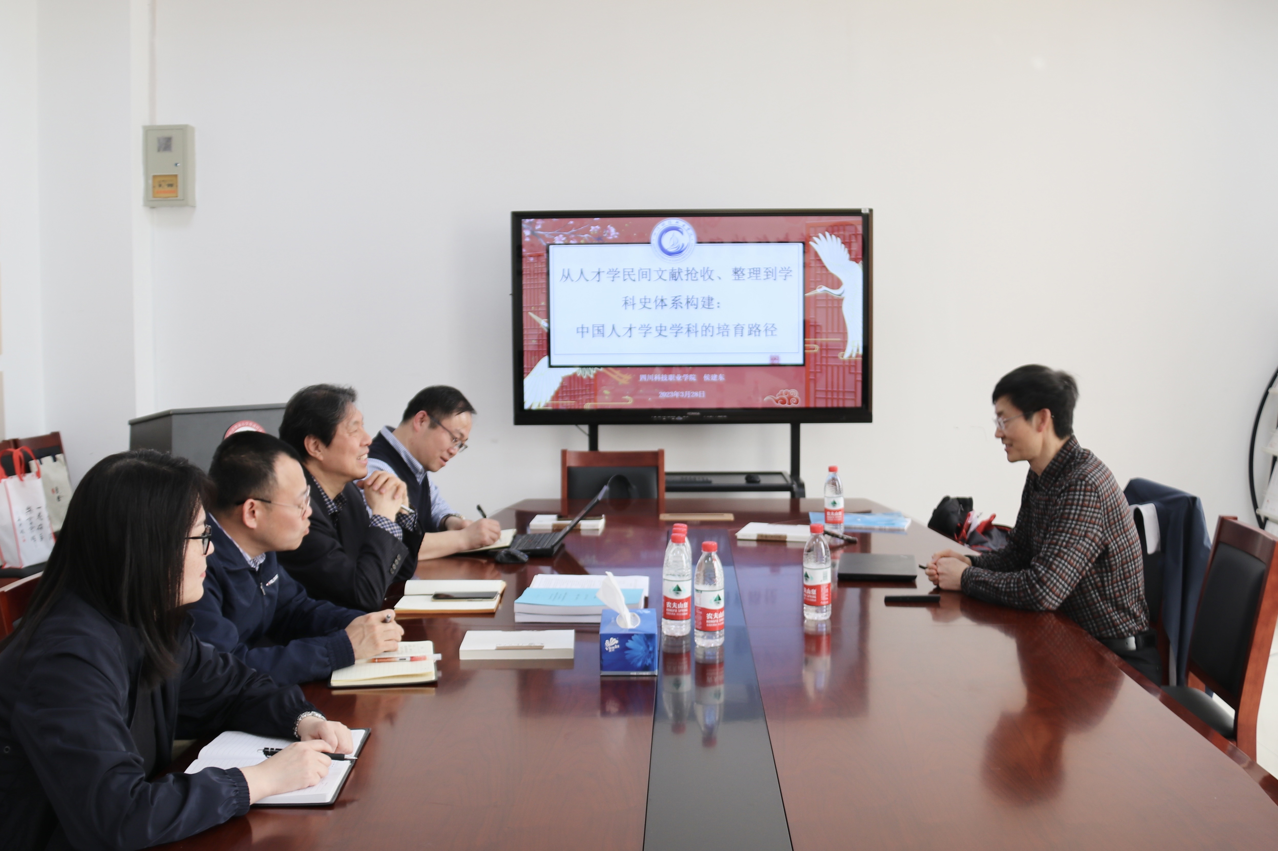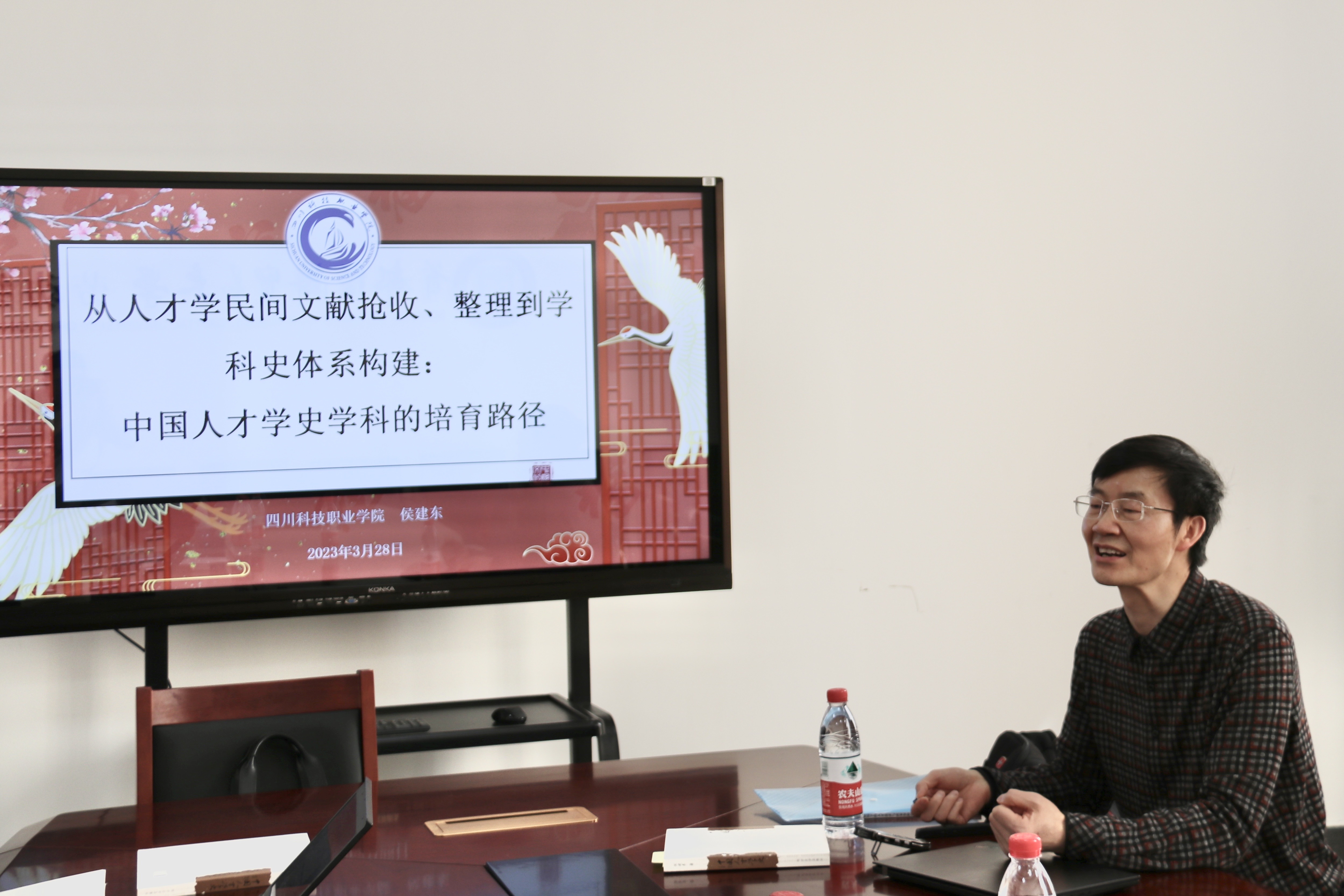 3月28日,中国人才研究会常务理事、四川科技职业学院教授侯建东携人才学著作《中国人才学史》来逼喱逼喱 进行中国人才学史学科的培育路径专题分享。逼喱逼喱 党委书记冯博,党委副书记、院长冯喜良,人才学系系主任苗仁涛,人才学系党支部书记陈书洁出席本次活动。