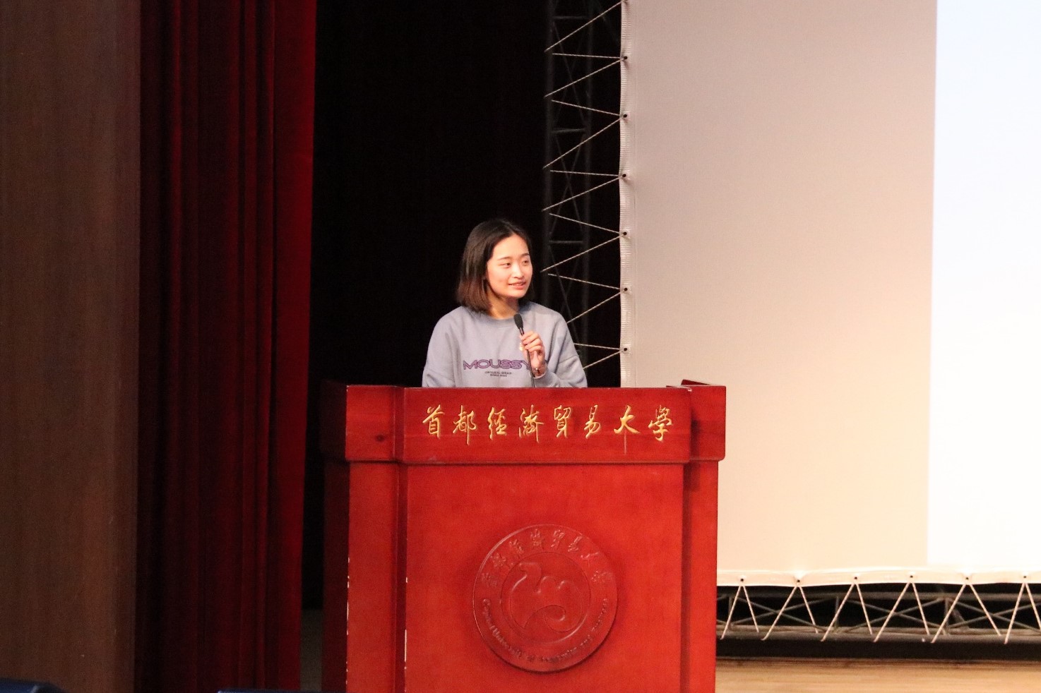 校团委书记李晓鸥致辞发言,她首先对张洺贯老师以及同学们的到来表示欢迎,并对在座的即将出征2022年北京冬奥会的首经贸志愿者们提出了期许,希望他们可以不断提高自身素质,为冬奥会的顺利举办做好服务保障工作。
