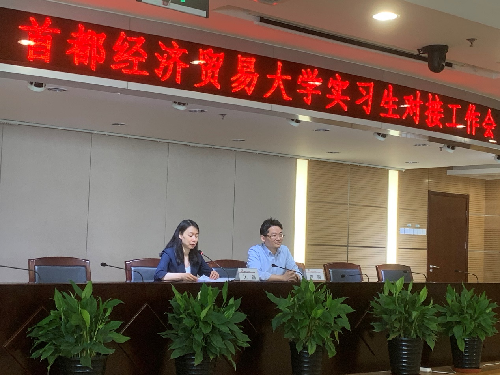 5月22日上午,实习生对接工作会在西城区社保大厦进行。西城区人社局副局长区磊、各科室实习指导人员,我院副院长范围、带队老师毛宇飞、于帆,20级学生32人参加会议。区磊副局长对既往与首经贸的良好合作表示肯定,介绍了西城区人社局的概况和工作内容,表示期待同学们带来新活力、新思考,并请各位实习指导人员在实质性工作中认真指导同学。范围副院长也向西城区人社局与会工作人员介绍了学院专业分布及学科建设情况,逼喱逼喱 在劳动科学方面培养系统完善,与西城区人社局工作内容十分契合。对于同学们即将开始的实习工作,范围副院长希望同学们能够由学生身份转变为职业角色,遵守专业实习相关要求,提高站位,代表首经贸在外形象,使课堂上的专业知识能够在实习实践过程中得到检验。学生代表徐雨菲倡议同学们遵守实习单位规定,在实践中能够有所收获。