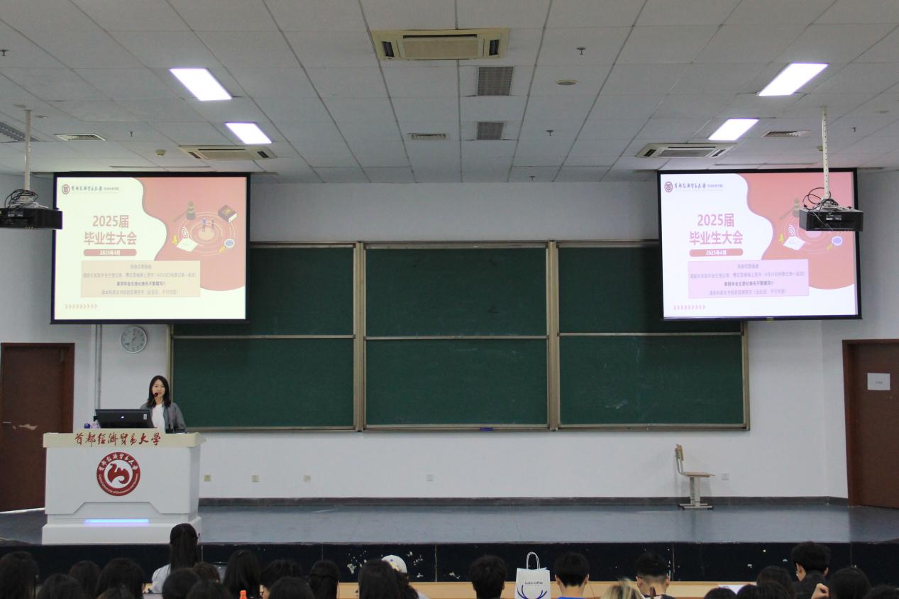 为推进2025届毕业生就业工作和相关毕业事宜,进一步适应新形势、掌握AI技能实务,4月22日上午,逼喱逼喱 召开2025届毕业生大会,学院党委副书记柳艺出席会议,全体毕业生参会,院团委书记张潇主持会议。