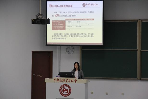 张潇为同学们详细讲解了团组织关系转接流程与大学生征兵政策。她重点解读了应届毕业生参军入伍优待政策,并鼓励广大毕业生踊跃响应号召,提醒有意向的同学们要仔细阅读报名条件,不要错过宝贵的应届报名机会。