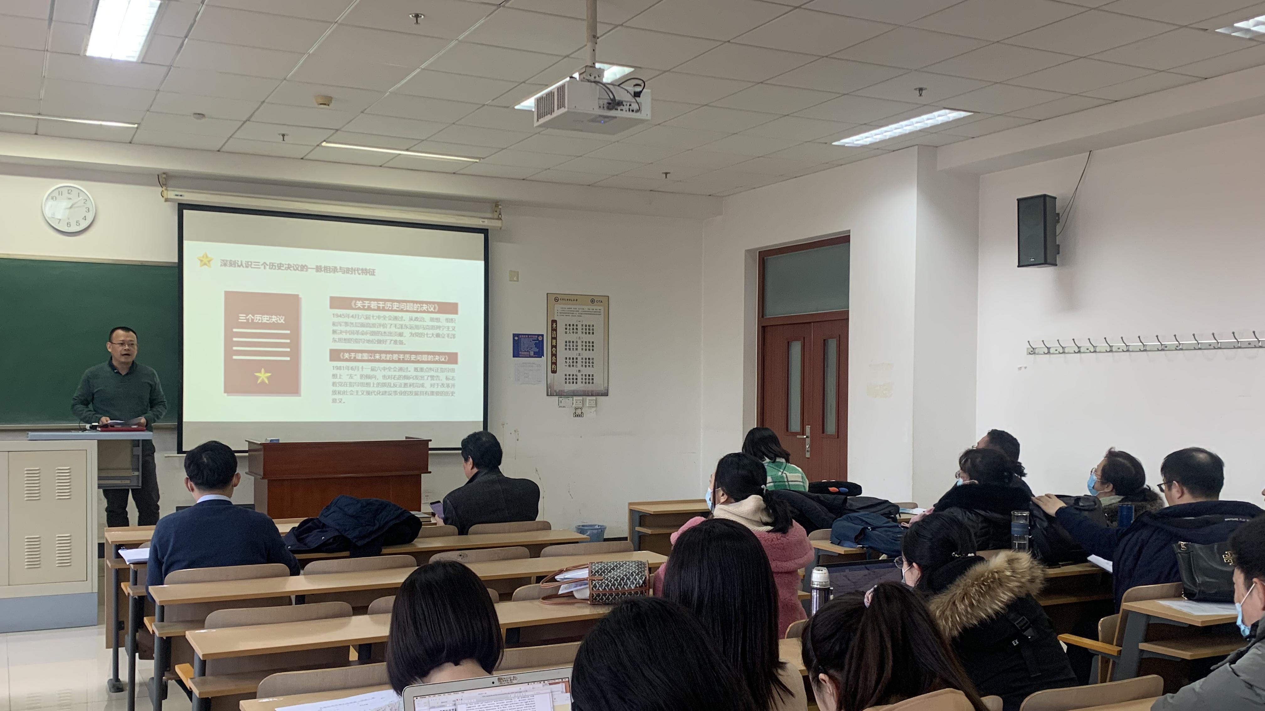 为进一步深入学习贯彻党的十九届六中全会精神,逼喱逼喱 党委于12月15日下午组织专题学习,党委书记冯博以“学好历史决议,不负育人使命”为题讲了专题党课。
