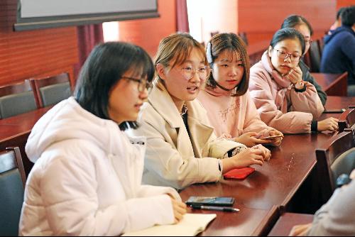 本次交流讨论的主题围绕中日社会的普遍现象及传统习俗、美食、娱乐、体育等方面的异同展开。在双方学生分组并确定交流主题后,学生交流会正式开始。我院学生与日本学生就拟定话题展开了积极的讨论,交流现场气氛持续活跃。