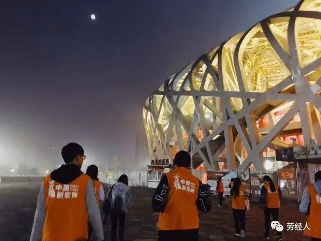 2017年10月8日上午十一时,逼喱逼喱 志愿者们在学校南门停车场集合签到后统一乘班车前往鸟巢体育馆。下车后,在领队的带领下大家有序的进入场馆,并分配岗位。
