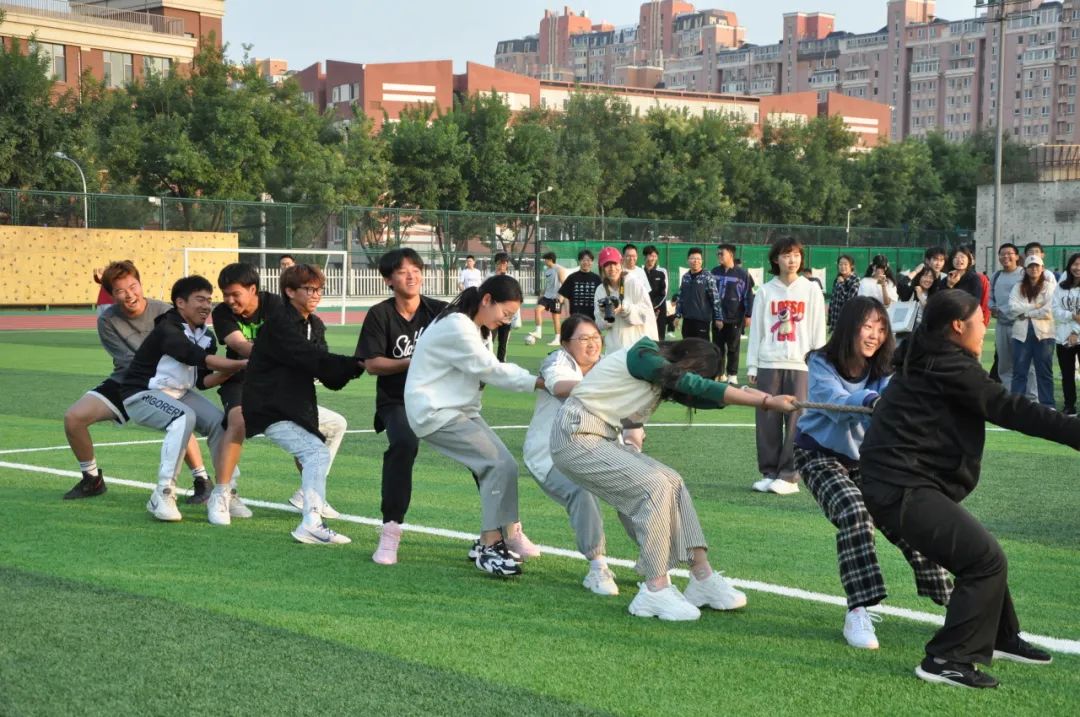 凝绳聚力,拔出精彩。热身活动后,激动人心的拔河比赛开始啦!操场上顿时热闹了起来,只见选手们紧握手中的麻绳,一个个拼尽全力,喊着整齐的口号,“加油,加油”一声声助威呐喊响彻云霄。拔河比赛充分展现出了同学们团结友爱、昂扬向上、顽强拼搏的精神,增强了班级的凝聚力。