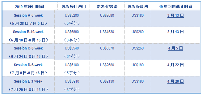 ☆ 项目时间灵活。UC Berkeley Summer分为5个Session学习时长,包括3周、6周、8周、10周及12周学习时长,方便同学根据自己的情况进行选择。UC Berkeley Summer Session D(2019年7月8日-8月16日)由于其和国内暑假时间匹配,更加受到国内各高校同学的欢迎;